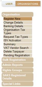 - Tick the tax type box, fill in the tax number and click “Register”