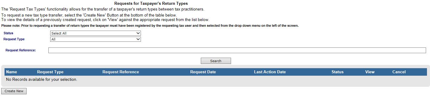 - Fill in the reference number next to the tax type and click “Request”: