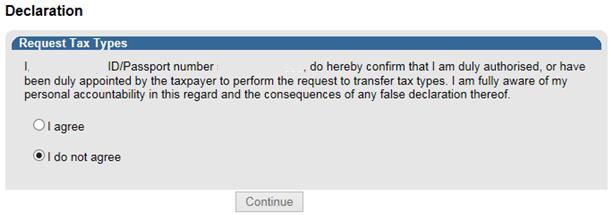 - Select ‘I agree’ or ‘I do not agree’ under Declaration: